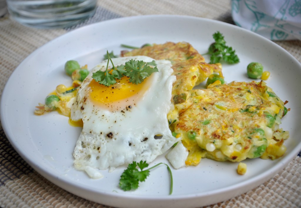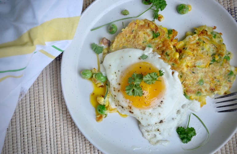 To make this a meal, I topped the patties with a fried egg. They can also be eaten on their own and dipped with a garlic and herb dressing.