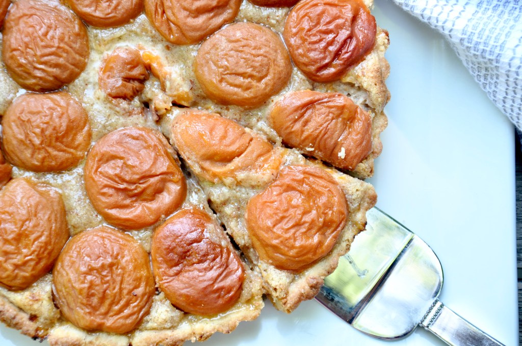 - Let the tart cool slight and then glaze with the warmed apricot jam