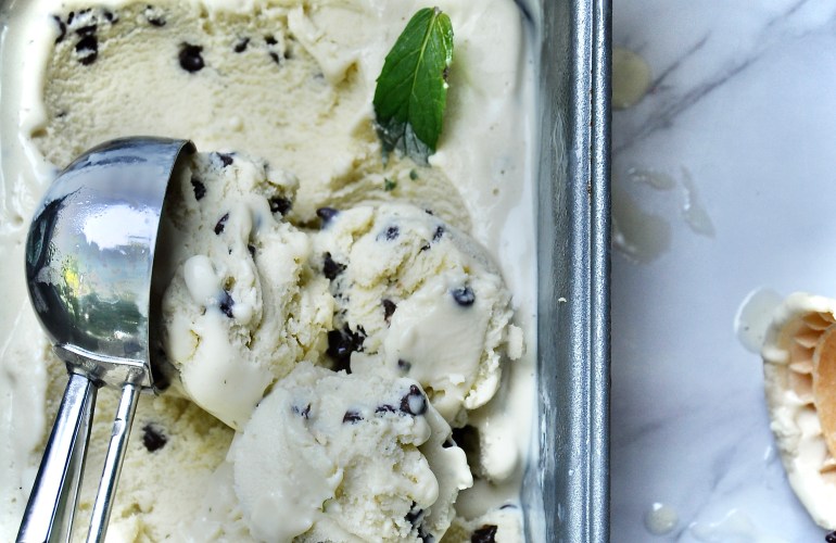 I have a lot of making up to do – starting with this tasty Spearmint and Chocolate Chip ice cream. You’ll have to hurry up and eat it, because in this heat it’s melting fast!